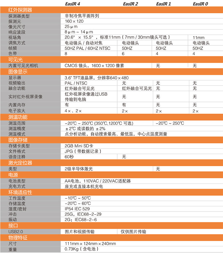 EasIR系列型紅外熱像儀是一款性能優(yōu)越、操作簡(jiǎn)便、堅(jiān)固耐用、高性價(jià)比的紅外熱像儀,紅外熱像儀 用途,其采用獨(dú)有的多項(xiàng)關(guān)鍵技術(shù)適合于各行業(yè)的應(yīng)用,產(chǎn)品設(shè)計(jì)采用人體工程學(xué)設(shè)計(jì),紅外熱像儀攝像機(jī),方便手持操作,紅外熱像儀圖像,堅(jiān)固耐用且密封性能極好的外殼,flir 紅外熱像儀,不受雨水、灰塵的影響,手持紅外熱像儀,能夠在任何惡劣的環(huán)境中正常工作。其獨(dú)有的菜單式導(dǎo)航界面,法國(guó)紅外熱像儀,紅外融合技術(shù),多功能頭盔式紅外熱像儀,高分辨率的LCD顯示屏,民用紅外熱像儀,200萬(wàn)高清可見光相機(jī)可以幫助您高效地查明故障問(wèn)題,非致冷醫(yī)用紅外熱像儀,EasIR系列是您紅外故障檢測(cè)的好幫手。