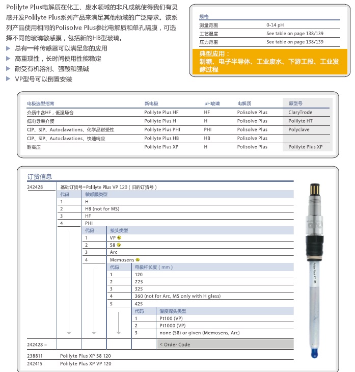 Polilyte Plus電解質在化工、廢水領域的非凡成就使得我們有靈感開發(fā)Polilyte Plus系列產品來滿足其他領域的廣泛需求。 該系列產品使用相同的Polisolve Plus參比電解質和單孔隔膜,,可選擇不同的玻璃敏感膜,,包括新的HB型玻璃。
