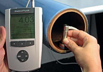 重現(xiàn)性 讀數(shù)的可靠性主要取決于讀數(shù)的重現(xiàn)性。電磁干擾是最普遍的導(dǎo)致誤差的根源,所以保護(hù)測量系統(tǒng)和探頭電纜免受這些干擾非常重要。 跟傳統(tǒng)技術(shù)不同,SIDSP®在探頭內(nèi)部產(chǎn)生和控制激發(fā)信號�;貍鞯男盘栔苯舆M(jìn)行數(shù)字轉(zhuǎn)換和處理從而提供測量厚度值。厚度值通過探頭電纜數(shù)字化傳輸?shù)斤@示裝置,也就是說:在這種情況下模擬測量系統(tǒng)的信號傳輸過程中沒有更多干擾。即使您的測量工件需要特別長的電纜線也沒問題,非接觸式涂層測厚儀,加長的電纜線同樣具有極強(qiáng)的抗干擾能力。 EPK 的SIDSP®探頭具有極高的重現(xiàn)性。將探頭放在同一測量點(diǎn)測量幾次,每次您都可以得到基本一樣的結(jié)果,再次證明了SIDSP®探頭的優(yōu)秀性能。