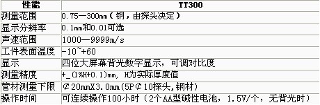可選附件: 1、TT300/TT100A/TT310/TT320/TT340系列超聲波測厚儀探頭參數(shù) 2、耦合劑 3、通訊軟件 4、通訊電纜 5、打印機