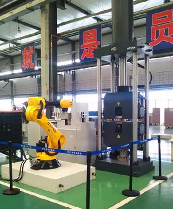 2000kN全自動微機控制電液伺服拉力試驗機是目前國內(nèi)最為先進的自動化試驗系統(tǒng)應用了80kg六自由度機器人、平推夾具、全自動引伸計、尺寸測量平臺等,各部分全部由我公司自主研發(fā)。在整機測控系統(tǒng)的協(xié)調(diào)控制下實現(xiàn)試樣錄入與管理自動送料、測量試樣尺寸、裝夾試樣、自動完成拉伸試驗自動測量控制各種信號試驗數(shù)據(jù)自動分析及上傳自動檢測與處理各種狀態(tài)及異常從而實現(xiàn)中厚板試樣的無人值守批量全自動試驗。可不間斷、高精度地完成批量試樣的材料力學性能測試。