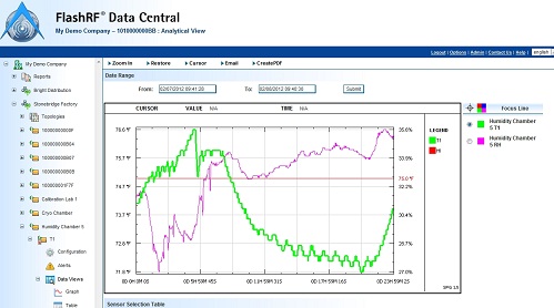 FlashRF 數(shù)據(jù)中心 DeltaTrak公司的FlashRF數(shù)據(jù)中心是基于云基礎(chǔ)應(yīng)用技術(shù),,它使系統(tǒng)有了更大的視圖和本地安裝的2.4 GHz射頻無線溫濕度網(wǎng)絡(luò)監(jiān)測(cè)的控制。 FlashRF 數(shù)據(jù)中心是通過云技術(shù)訪問所有現(xiàn)在網(wǎng)絡(luò)瀏覽器并且提供易于使用結(jié)合了外部設(shè)施地圖、 記錄議溫度圖表和分層設(shè)施的網(wǎng)絡(luò)結(jié)構(gòu)的界面。應(yīng)用程序非常直觀使得應(yīng)用一目了然易于操作。DeltaTrak 的 FlashRF 數(shù)據(jù)中心解決方案允許互聯(lián)網(wǎng)用戶訪問其溫度數(shù)據(jù)在任何時(shí)間以向顧客提供更好的產(chǎn)品質(zhì)量的可見性。警報(bào)可以建立在溫度劇增并且通報(bào)可以和電子郵件或短信同時(shí)發(fā)出。