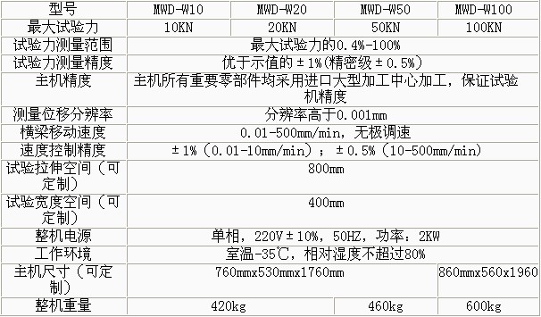 MWD-W系列微機(jī)控制電子式人造板試驗(yàn)機(jī)技術(shù)參數(shù):